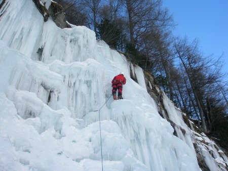 It was a cold, sunny day. The ice has survived the last 2 days of warm weather. Good climbing on a quick visit to La Gouille....