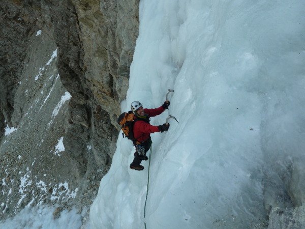 First day ice climbing today. The weather has been settled and dry for so long now the hills are very dry and there's no snow, but high, shady crags have plenty of ice now. A not too cold autumn is quite good for ice, keeping water moving ...