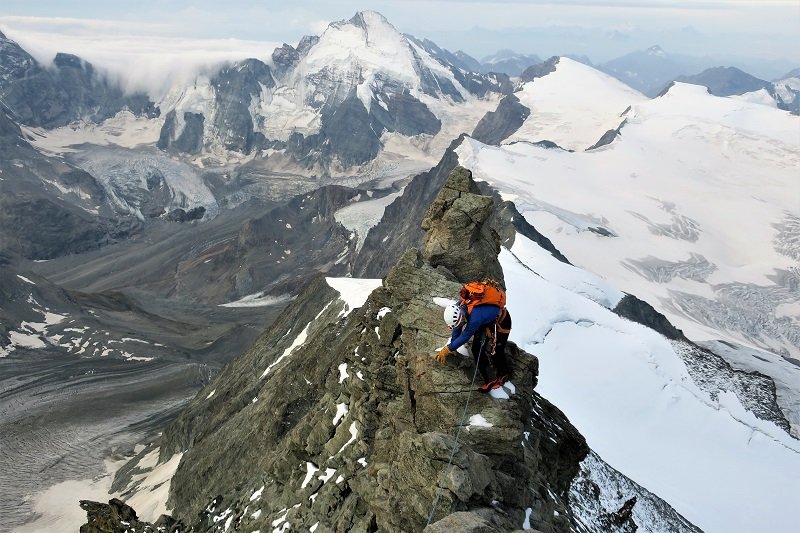 The South Ridge of the Dent Blanche is one of the finest "normal" routes to any 4000m summit with exposed and airy climbing on good rock and spectacular views! Finding only 1 other team on the route made it even ...