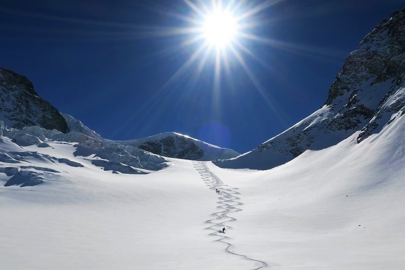 At last! It took 3 goes but in the end the Haute Route is complete. Frustrated by weather on previous attempts, we did a warm-up in the Vallée Blanche, then just had enough of a window to complete the missing 2 days. Then it snowed, and it ...