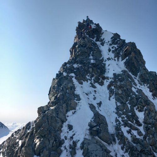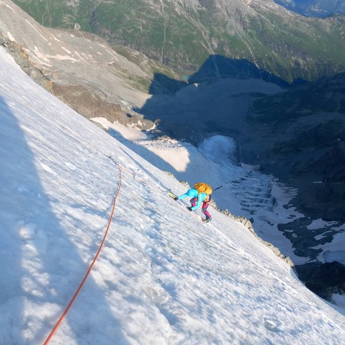 1: Mont Blanc de Cheilon traverse. Rarely busy, usually done from the Dix hut but maybe even better from the Vignettes if you haven't been up the Pigne d'Arolla. The tricky bit is short and only just AD, so it works well as a step-up in grades, or as a lung-busting acclimatiser...
