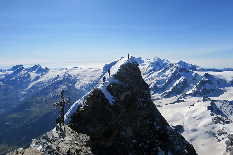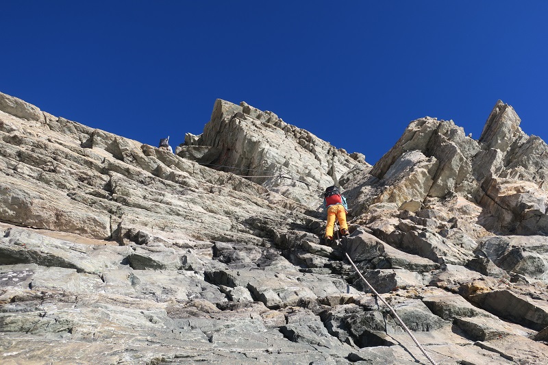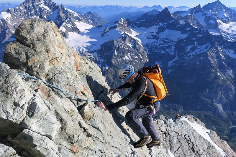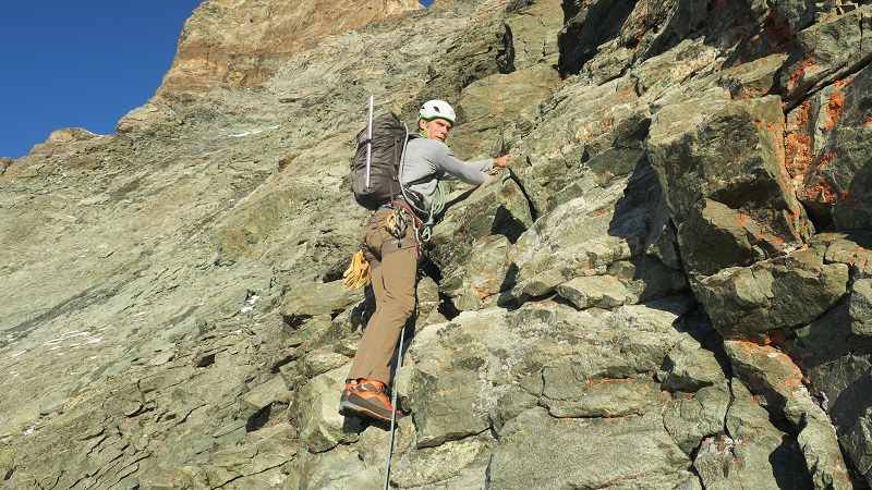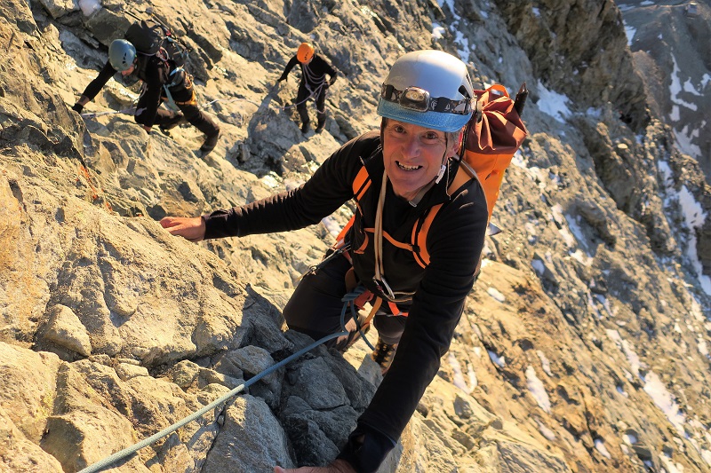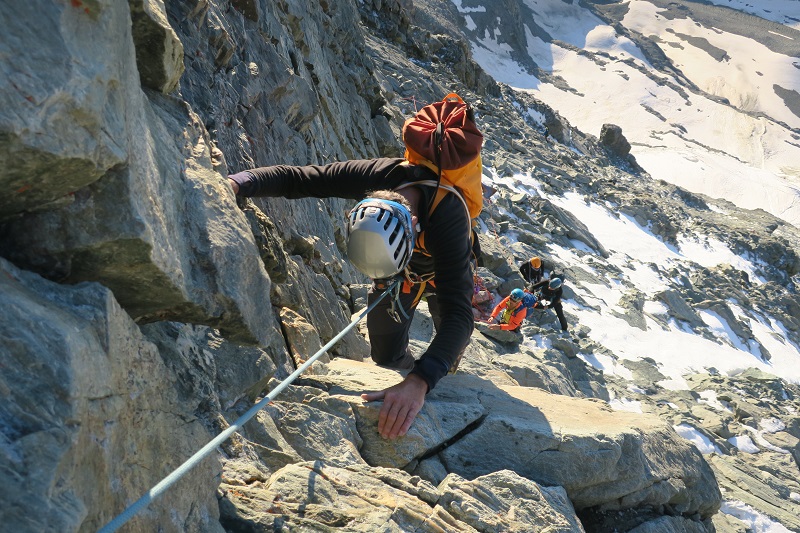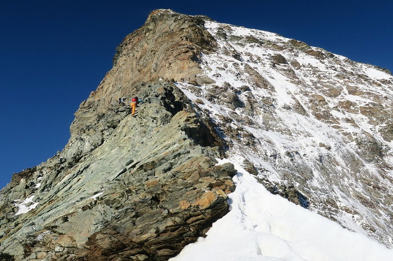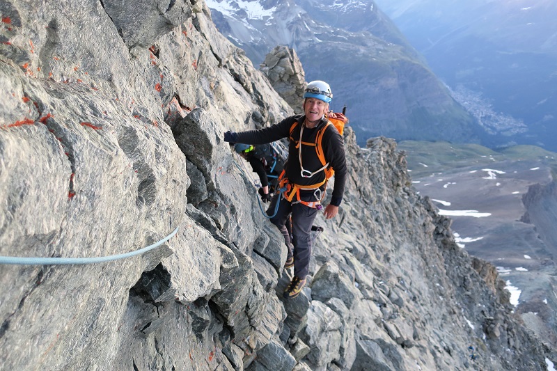 It's an unusual climb in lots of ways - no glacier, a 3 minute "walk-in" from the hut, fixed ropes - and perhaps that's why it is often underestimated. In fact, the climb is 1200m of sustained hard work and concentration. There's no easy walking where you can switch off, and success needs good fitness, strong legs, accurate route-finding and some careful ropework. Then of course, there's the descent - the mountaineering truism "the top is only halfway there" is never truer than on the Matterhorn!
