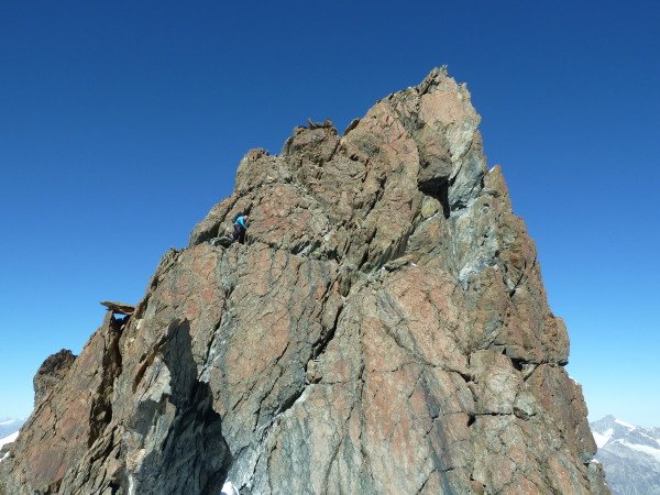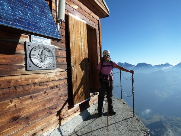 The Upper Moseley slab is probably the technical crux, and leads to the Solvay hut at 4000m. The second highest toilet in the Alps.