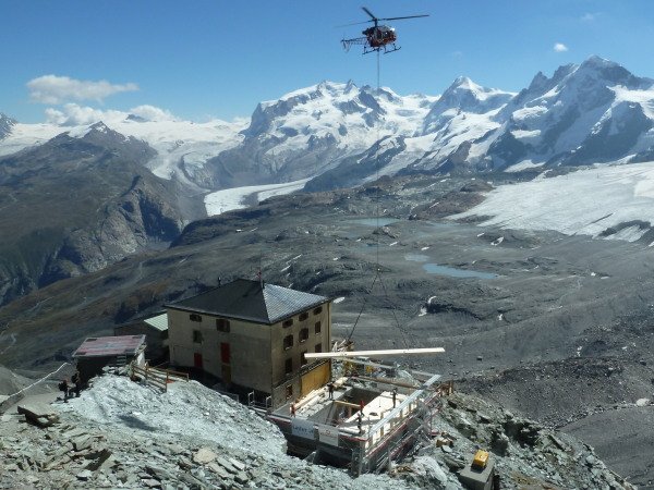 Back at the hut, construction and wacky heli-craning was going on flat out, right next to the busy hut terrace.