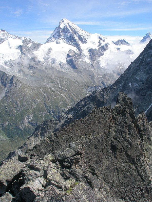 The Petite Dent de Viesivi dominates the village of les Hauderes. If it had a Chamonix style cable car access it would be one of the most popular day routes of its grade in the Alps - luckily/sadly it doesn't. Instead, 3 hours of unrelentingly steep path lead from Satarma to the start at the Col de Tsarmine. From here, turn left and follow the ridge - excellent red Gneiss and fantastic climbing over several gendarmes.