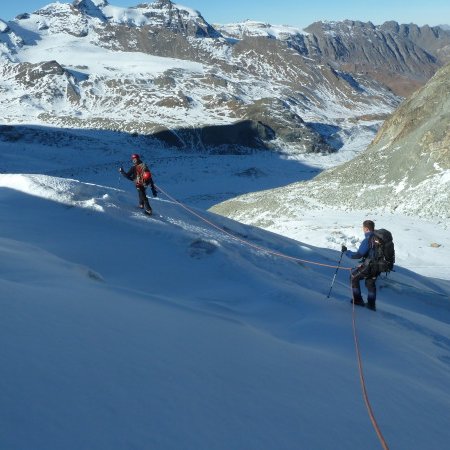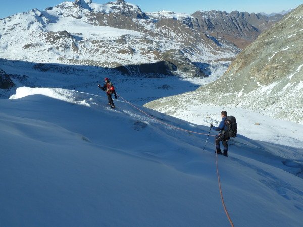 November has been cold and dry this year - not ideal for the imminent ski season but it does mean there are some great conditions in the mountains. In peak season the classic Vignettes- Pigne d'Arolla - Dix traverse is very busy, but over the last 3 days we saw...no-one!