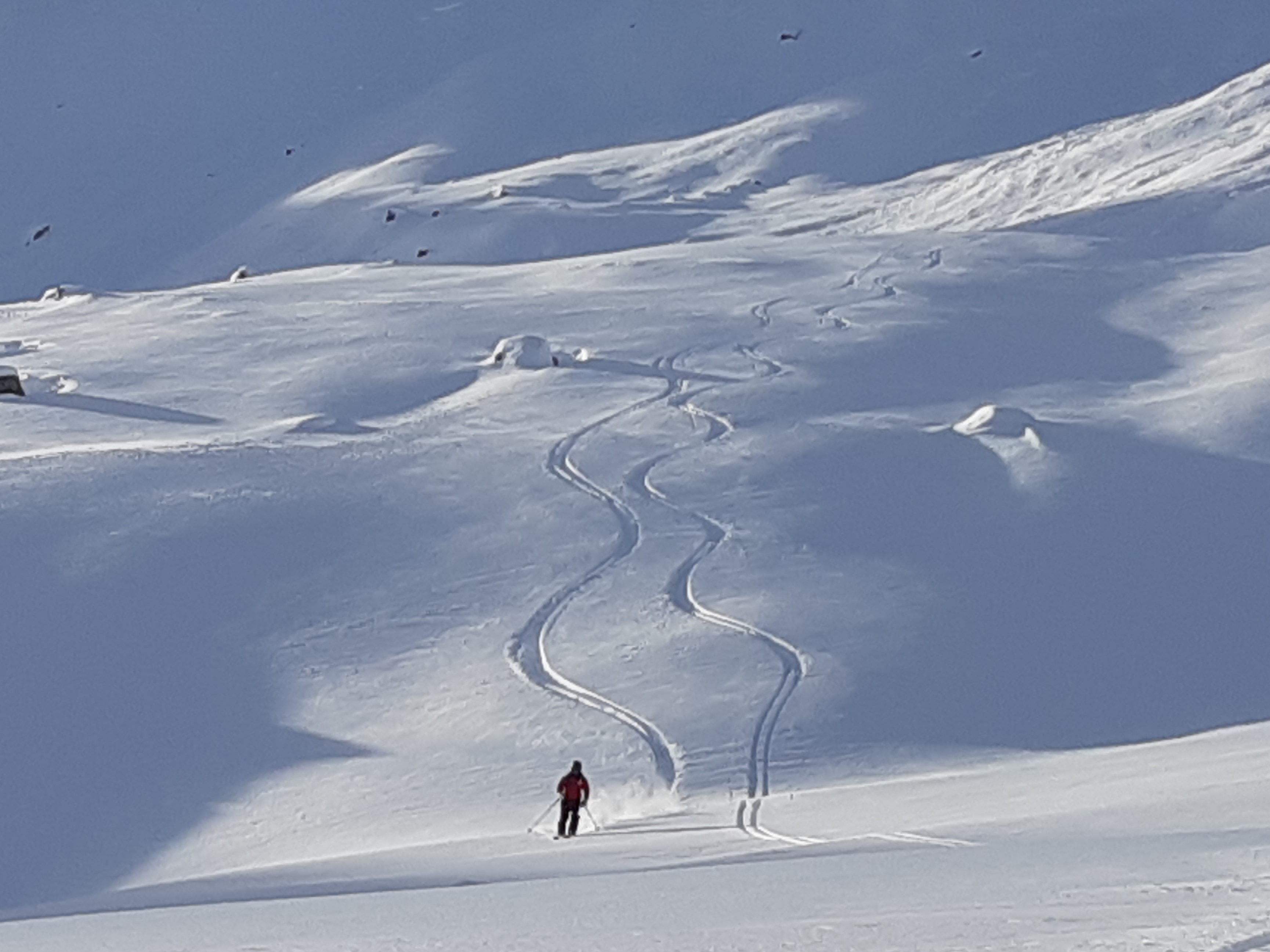 There has been some good touring. Here at the Col de Bréona, with 1500m of descent on gentle angles to les Hauderes.