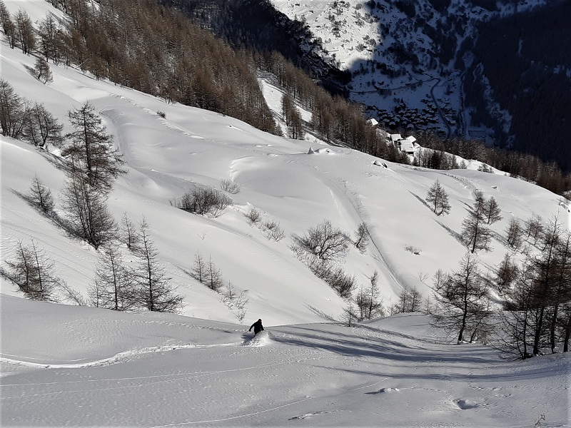 And some more excellent skiing on the Pallanche de la Cretta - after a long slog up in fresh snow we enjoyed 1500m of fresh snow all the way to the valley bottom.